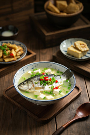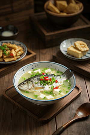 Chinese cuisine: crucian carp tofu soup