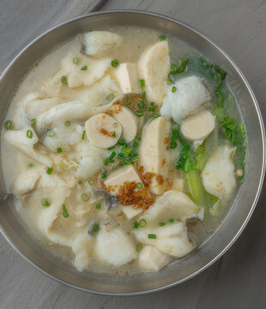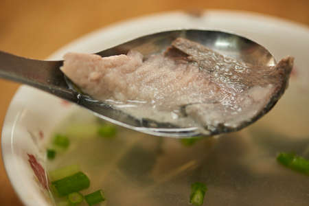 Milkfish skin soup, distinctive and famous seafood cuisine of Taiwanese street food in Tainan.