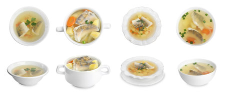 Cod soup on a white background