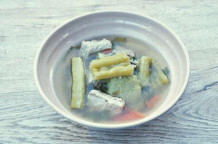 Spice sour soup made of Tilapia fish , cucurbita and tamarind paste