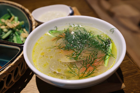 Close up of a bowl of delicious fish soup at Taichung, Taiwan