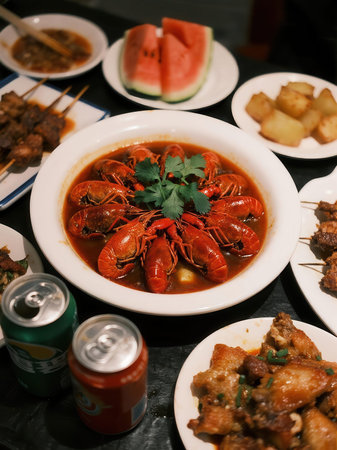 Fresh lobster food. red lobster dinner seafood. gourmet food healthy boiled lobster cooked