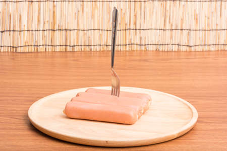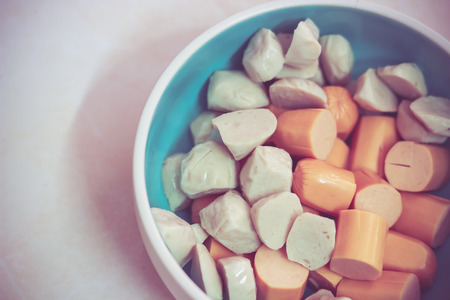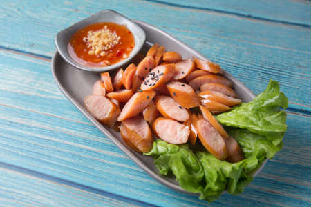 Thai Foods,Pork sausages are cut into many pieces, put in a container.