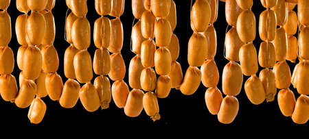 Close up Image of Thai sausage made from minced pork mixed with Thai spices..