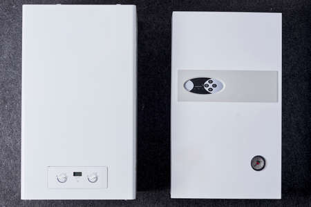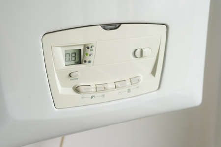 Close up view of a gas heating boiler for home. Control panel.
