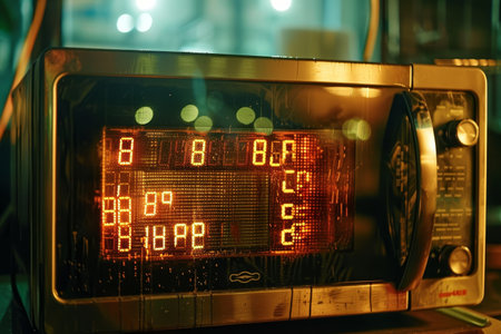 A close-up shot of a modern kitchen appliance control panel, showcasing its sleek digital display and buttons for temperature and timer settings, perfect for contemporary cooking environments.
