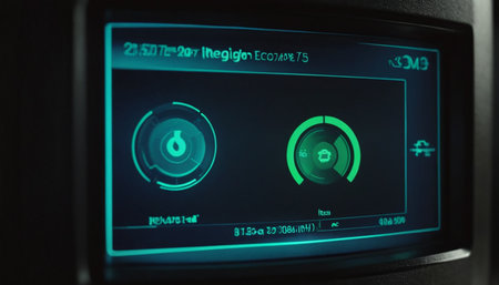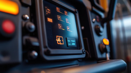 Modern control panel with illuminated display and buttons showing vital data