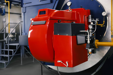 Industrial boiler with various equipment, inside view