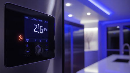 smart thermostat controls home temperature with a single touch, created with generative ai