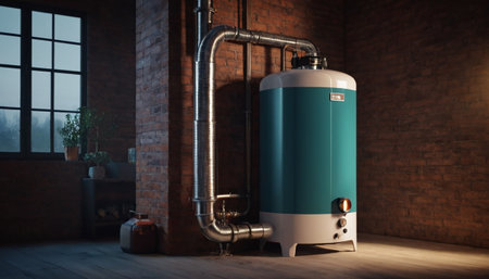 Skilled fix maintenance water heater with tools and gas pipe in a contemporary home environment