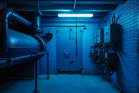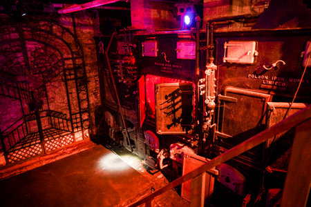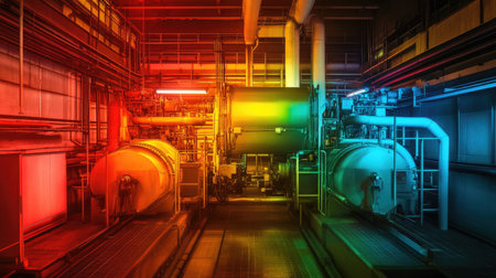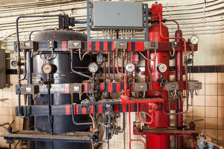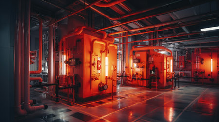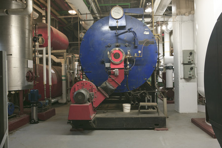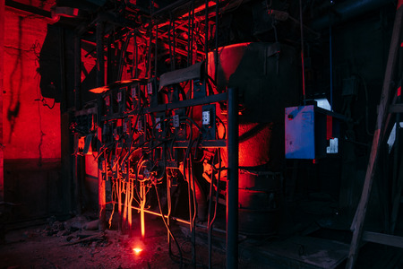 Industrial boiler in red light. Shooting Location: Montreal, Canada