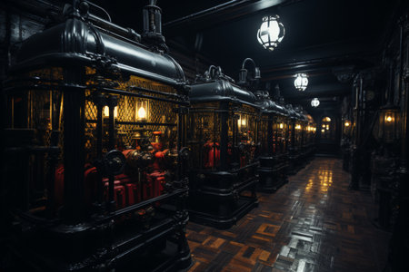 London, United Kingdom - May 13, 2019: HMS Belfast warship museum interior, saw action during the second world war, is now permanently moored as a museum ship on the River Thames in London.
