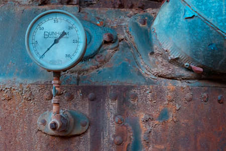 Vintage, rusted steel boiler with gauge