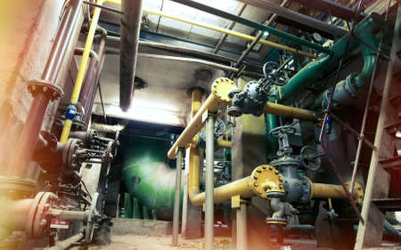 interior of the production room of the boiler station for residential heating, old and abondoned station