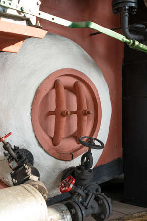 Factory for heat with iron pipes boiler and valves in the old state.