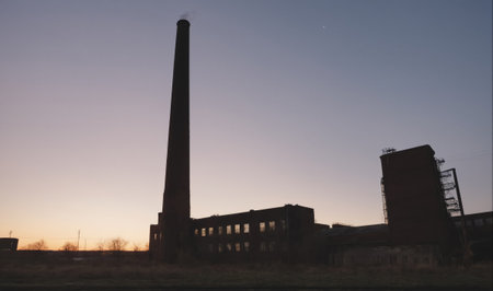 Power Plant Generates Energy Through Extraction and Metallurgy in Misty Evening Light Near Water Generative AI