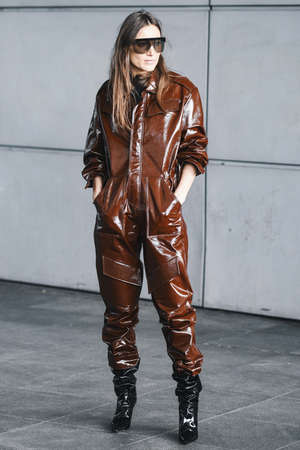 Paris, France - March 04, 2019: Street style outfit - after a fashion show during Paris Fashion Week - PFWFW19