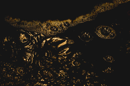 abstract background with bubbles in water, black and yellow tone.
