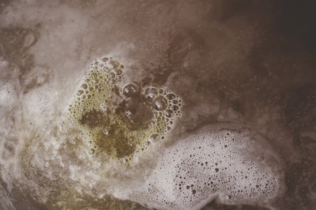 Burgundy foam. Foam texture as background. Background and texture concept. Close up of bubbling burgundy foam