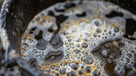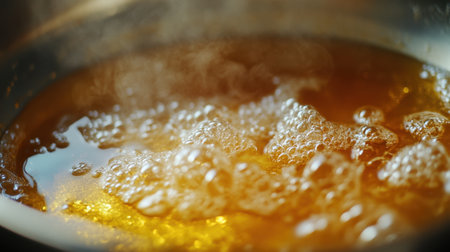 A mesmerizing close-up captures the vibrant movement of bubbles in a warm liquid, showcasing the essence of cooking and culinary artistry in a kitchen environment.