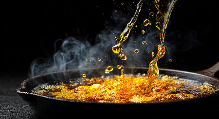 Sizzling Pouring oil frying food. Cooking stove. Generate Ai