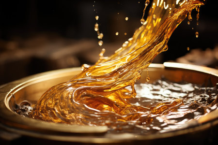 Pouring oil in a copper bucket. Shallow depth of field.