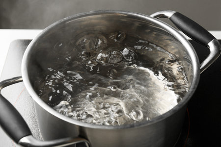 closeup water boiling in saucepan on induction stove