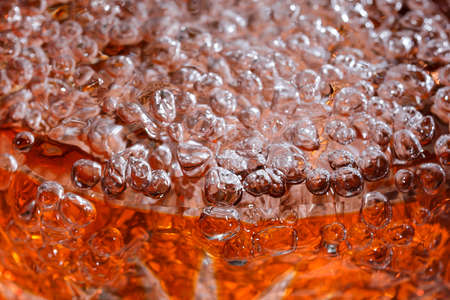 Bubbles in a glass of honey close-up macro photography