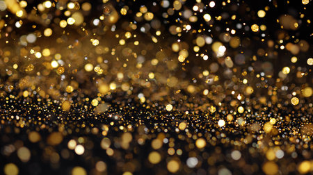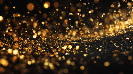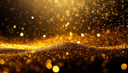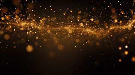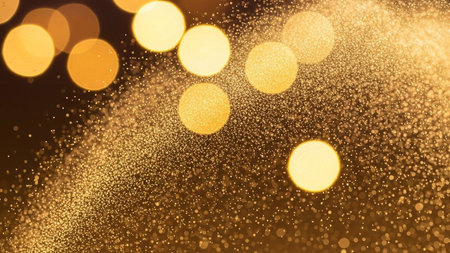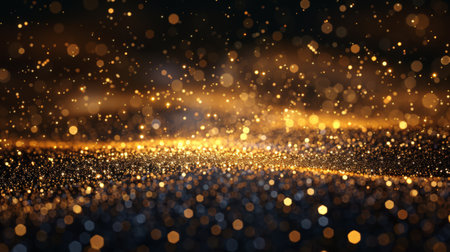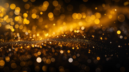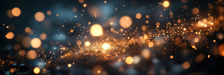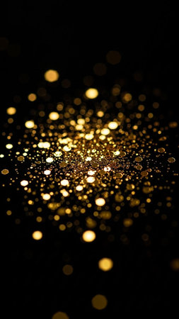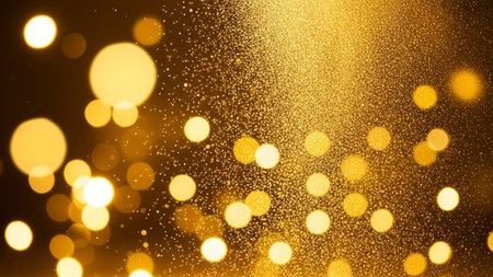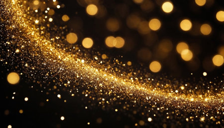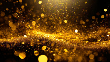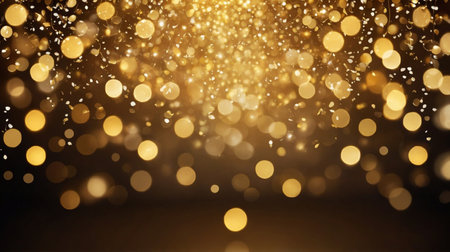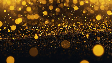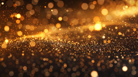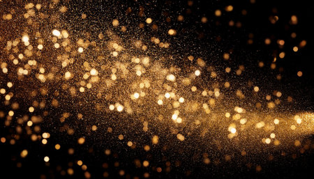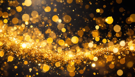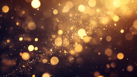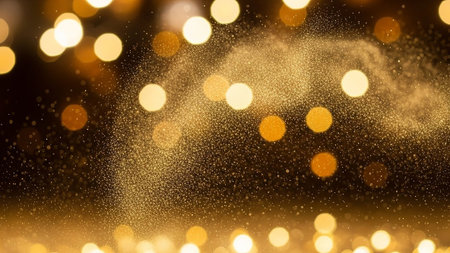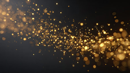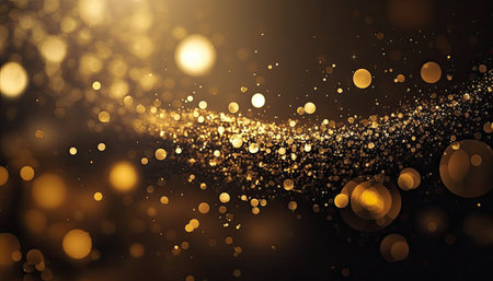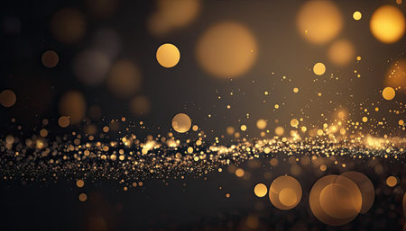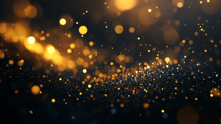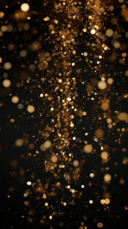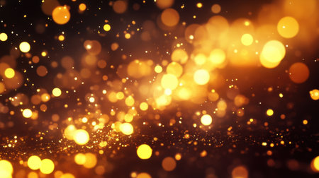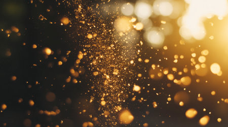 A captivating display of golden particles creating a dynamic bokeh effect against a dark background, perfect for capturing the essence of celebrations and joy.