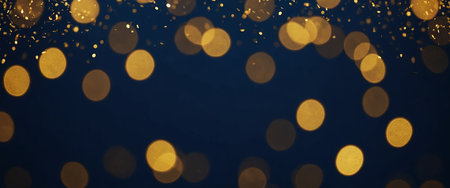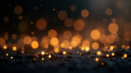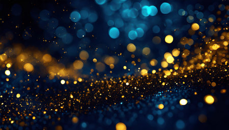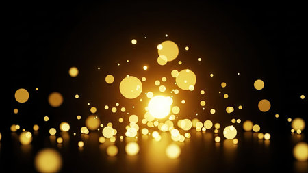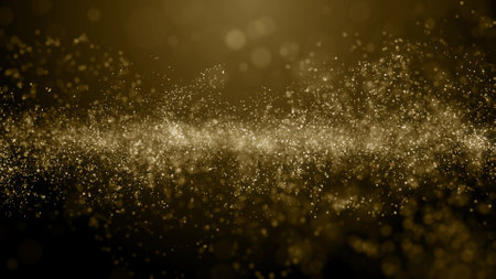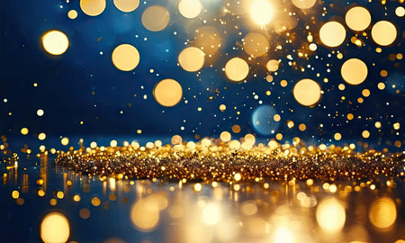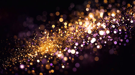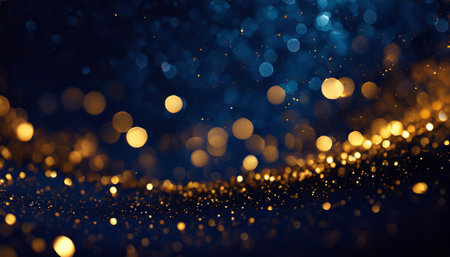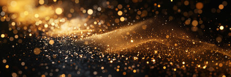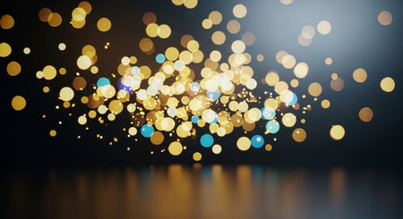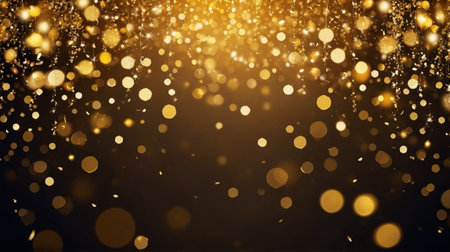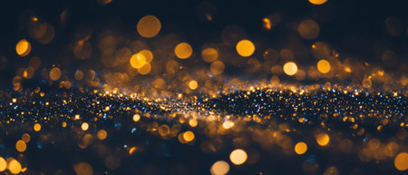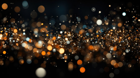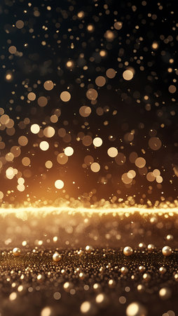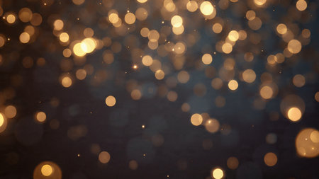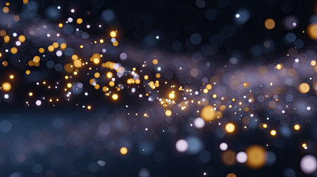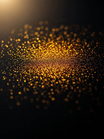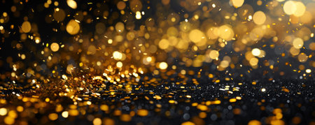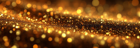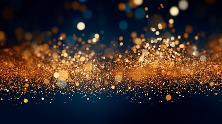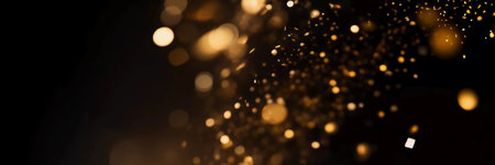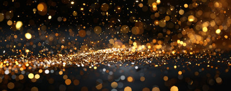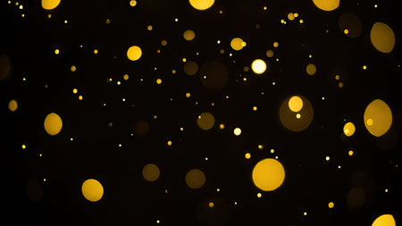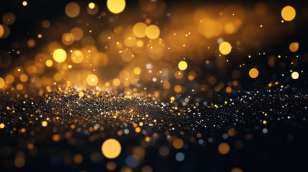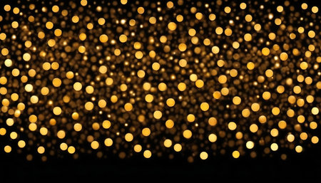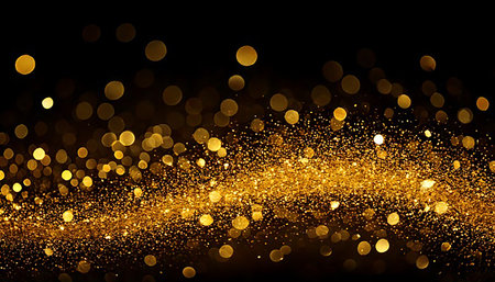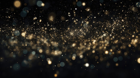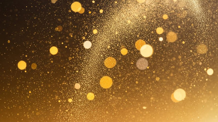 A captivating display of golden particles creating a dynamic bokeh effect against a dark background, perfect for capturing the essence of celebrations and joy.