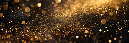 wide panoramic view of sparkling golden bokeh lights creating a festive and luxurious atmosphere.banner