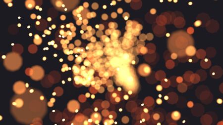 abstract golden bokeh with flying dots circles energy particles and light rays background.