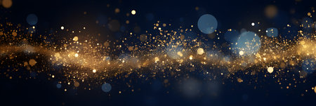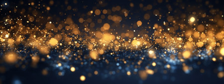 AI Generated. abstract background with Dark rich blue and gold particle Christmas Golden light shine particles bokeh on navy blue background Gold foil texture Holiday concept