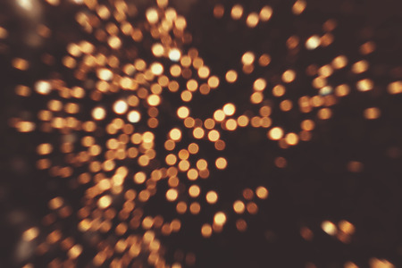 Golden bokeh lights on black background. Christmas and New Year concept.