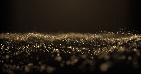 A captivating gala texture showcasing falling gold lights and sparkling dust particles over a dark, dramatic background. This abstract golden pattern evokes elegance and sophistication, ideal
