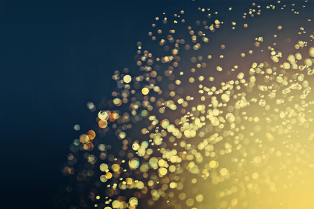 Golden bokeh lights on black background. Festive Christmas and New Year background.