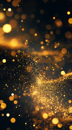 This image captures a mesmerizing scene of numerous golden sparkles scattered against a dark background. The sparkles vary in size and brightness, creating a sense of depth and dimension. The overall effect is one of enchantment and magic, evoking a feeling of wonder and fantasy.