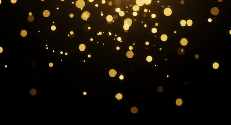 Golden sparks illuminate a dark background in this image. The composition features numerous bright, circular elements scattered across the frame, creating a sense of movement. Suitable for projects requiring a touch of magic or visual interest, the style appears modern, with potential uses in various commercial and editorial contexts.