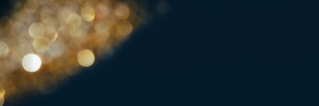 wide panoramic view of sparkling golden bokeh lights creating a festive and luxurious atmosphere.banner