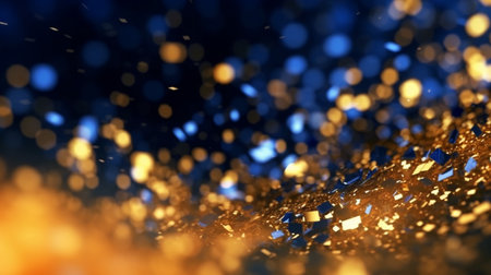 AI Generated. abstract background with Dark rich blue and gold particle Christmas Golden light shine particles bokeh on navy blue background Gold foil texture Holiday concept