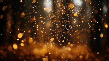 This captivating image captures the essence of celebration with gold glitter falling gracefully against a dark background, creating a magical ambiance for various occasions.