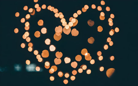 Blur background with glowing heart bokeh. Defocus abstract romantic shine wallpaper. Valentine day blurry lights