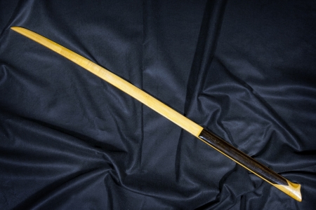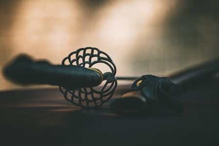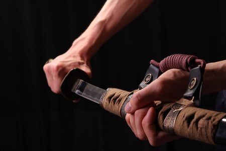 Japanese samurai sword katana on a black background. Selective focus. Shallow depth of field