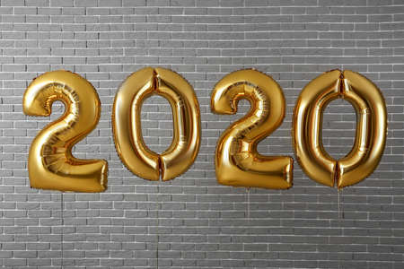 Figure 2020 made of balloons on brick background