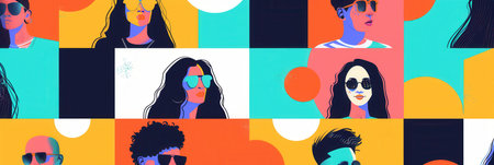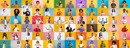 Diverse group of people expressing emotions in colorful lifestyle collage