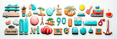 Icons include beach, sun, sunglasses, ice cream, flip flops and palm trees. Ideal for creating summer themed designs or social media posts. The line style gives the icons a modern and clean look.