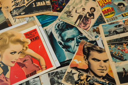 Bunch of different images on wall. Layouts for social networks are stimulating with a nostalgic twist. Generative AI.