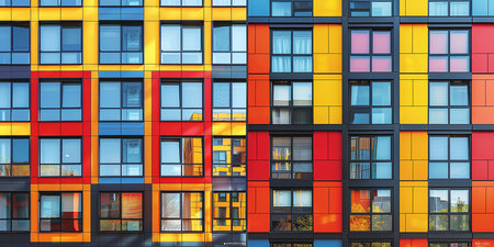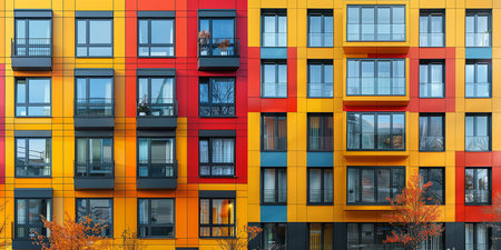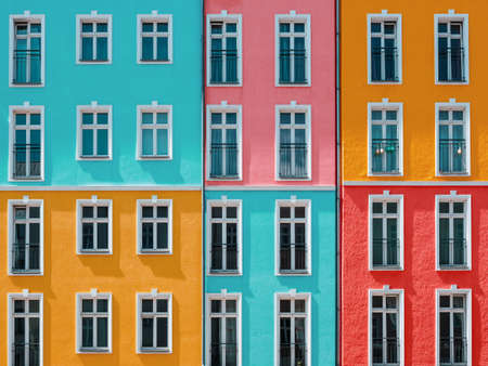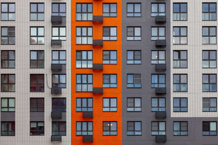 colorful facade of modern apartment building, symbol of housing, rental, anonymity, big city