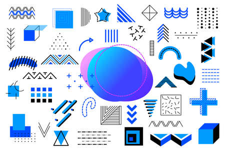 Memphis geometric blue elements for design. Vector illustration for web, sale, posters, advertising, template, promotion