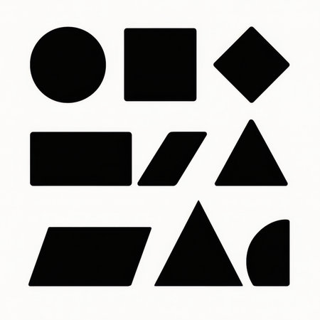Set of geometric shapes on a white background. Black and white.